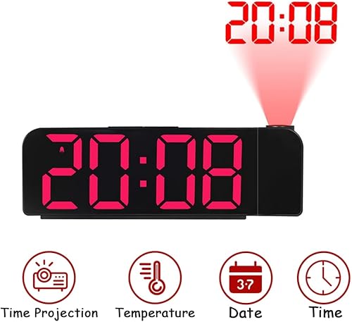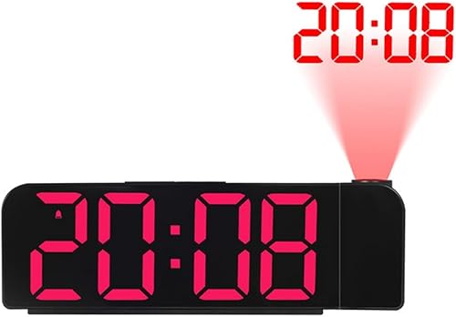 PYNQ RéVeil à Projection Rotation 180° 12/24H Horloge NuméRique LED Charge USB RéVeil Projecteur de Plafond (Rouge)