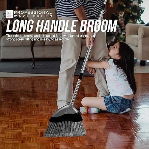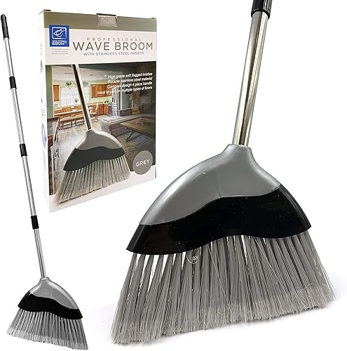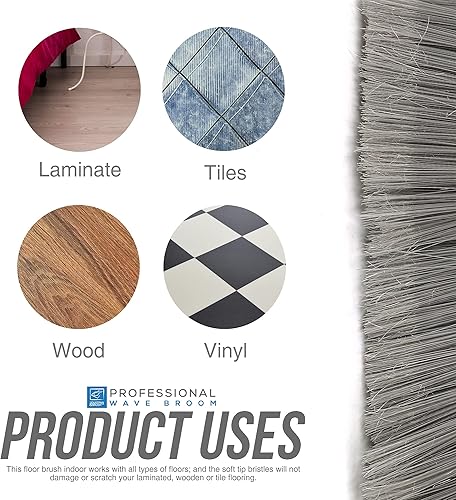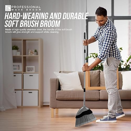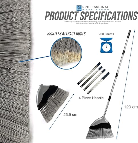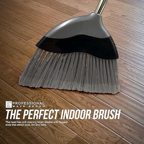 Balai doux d'intérieur avec manche de 120 cm de long – Brosse de balayage ondulée avec brosse à poils souples coudée et manche en acier inoxydable à 4 sections – Balai de maïs pour nettoyage des sols