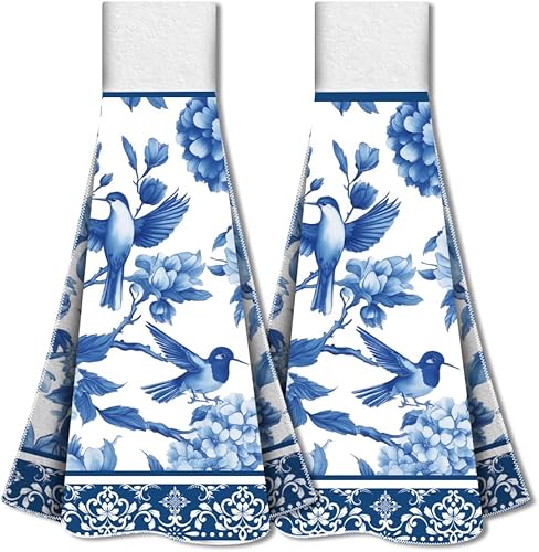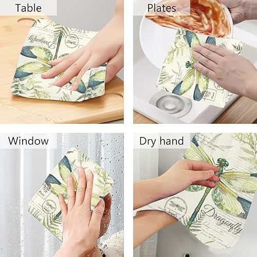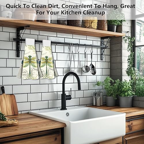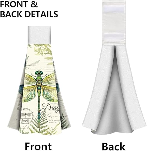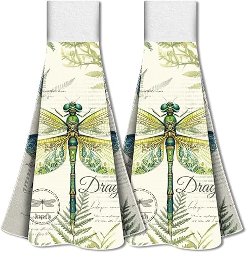 WADORN Lot de 2 torchons de Cuisine à Suspendre Libellule Vintage, Serviettes à Main Douces Absorbantes de Libellule Aquarelle de Boucle Serviettes à Vaisselle Décoratives Libellule pour Maison