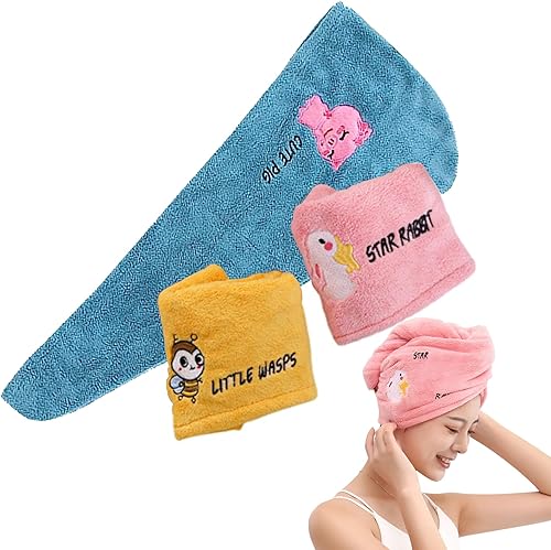 FAINCA Lot de 3 Serviette Microfibre Cheveux, Serviette Cheveux avec Boutons, Sèche Rapidement et Absorbant Serviette à Séchage Rapide Cheveux, pour Tous Les Types de Cheveux