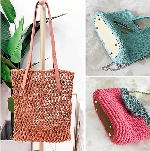 Fond de sac,3 Pièces Fond de Sac à Crocheter,22x10 cm Crochet Sac Bas en cuir PU,Base Sac Crochet avec trous,Fond de Sac Ovale pour Bricolage Artisanat Couture Sac à Main Fabrication de Sac