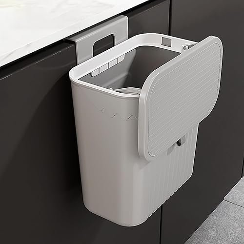 Générique Poubelle Suspendue Cuisine Avec Couvercle- Poubelle Murale De Porte D'armoire À Large Bouche | Fixation Sans Perçage | Fournitures De Cuisine Pour La Cuisine, Salle De Bain, Bureau