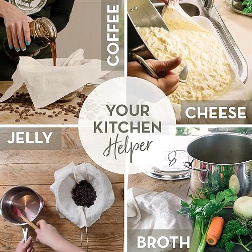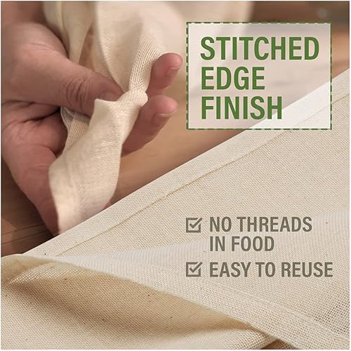 Étamine en coton bio écru à filtrer – 2 carrés ourlés réutilisables certifiés GOTS – Grande passoire réutilisable – 58,4 x 58,4 cm