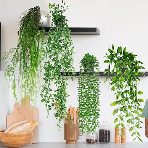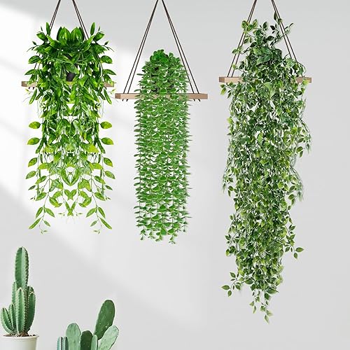 ENCOUN 3PCS Plante Artificielle Tombante avec Pot, Suspendues Extérieure Intérieure Decoration pour Balcon, Cuisine, Jardin
