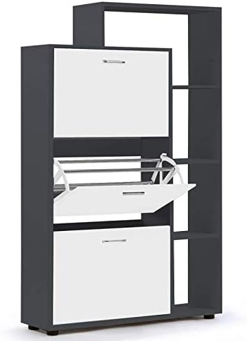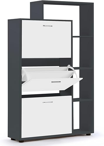 IDMarket - Meuble à chaussures 18 paires KLARK gris 3 portes blanches avec étagère