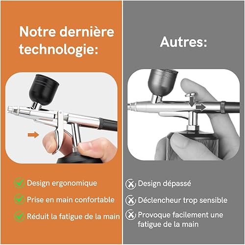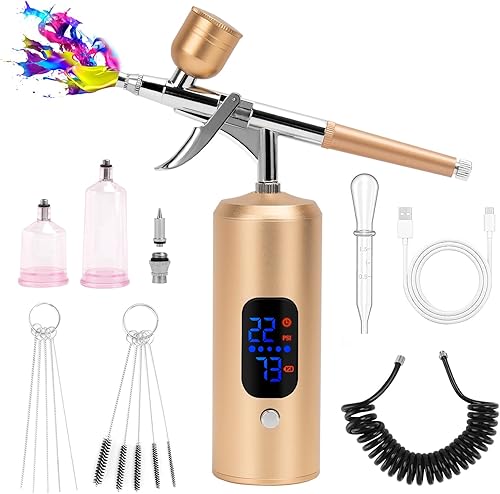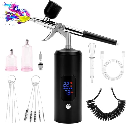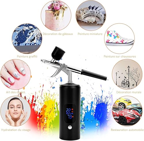 BriSunshine Kit Aérographe Sans Fil, 38PSI Réglable avec Compresseur, Rechargeable, Écran LCD, Tuyau Extension, Idéal pour Coiffure, Nail Art, Décoration Gâteaux, Maquillage, Peinture Modélisme