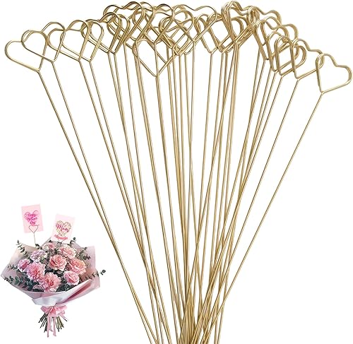 WANDIC Lot de 30 médiators en forme de cœur en métal plaqué or, largement utilisés pour la décoration de fête de mariage, arrangements floraux, décoration d'intérieur