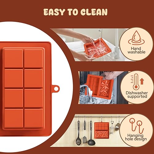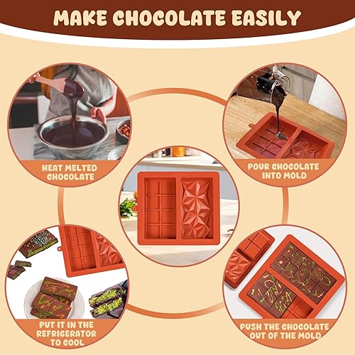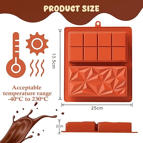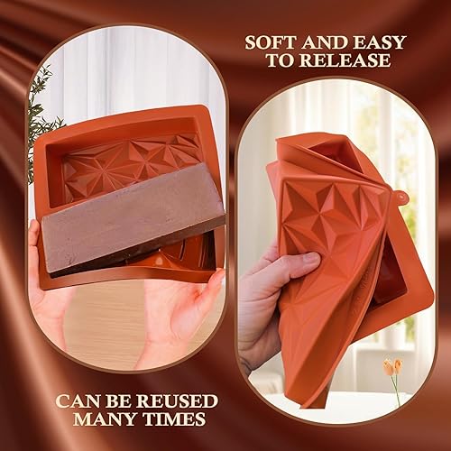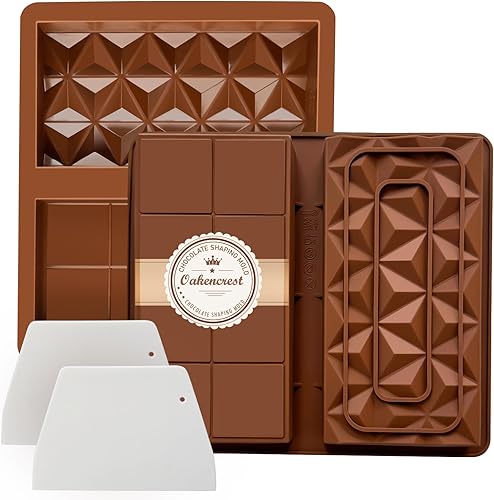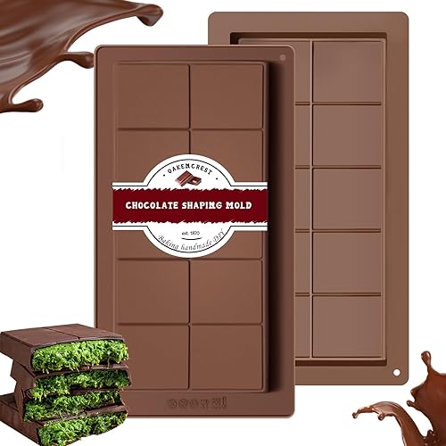OAKENCREST Lot de 2 Moules à Chocolat Profond, Moule Silicone Tablette de Chocolat Antiadhésifs, pour Pieces en Chocolat Maison (Brun II)