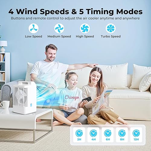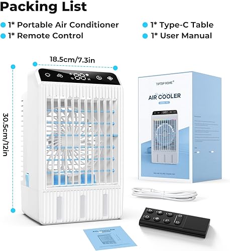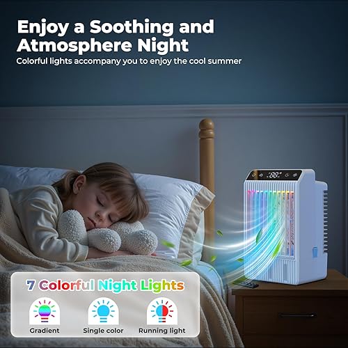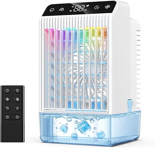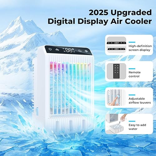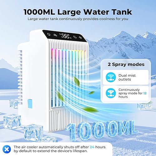 Climatiseur Mobile avec Ecran, 1000 ml Refroidisseur D'air, 4-EN-1 Ventilateur Humidificateur Mini Clim avec Double Pulvérisation et Lumière, 4 Vitesses de Synchronisation Climatiseurs Portables