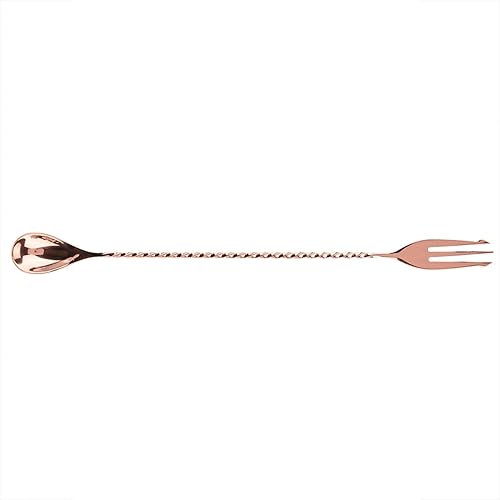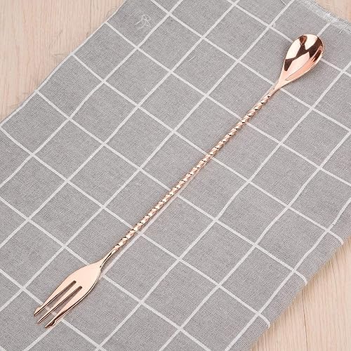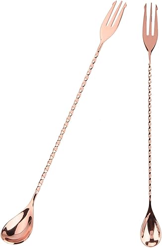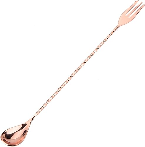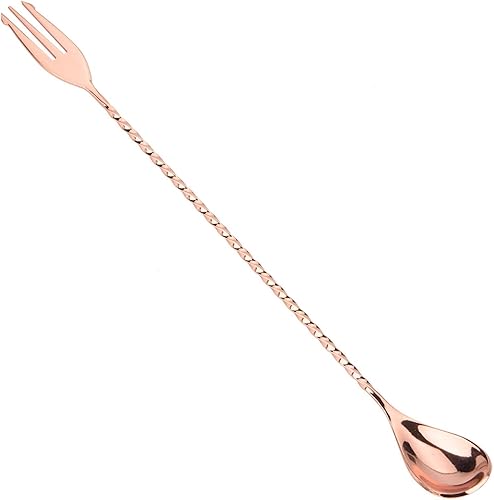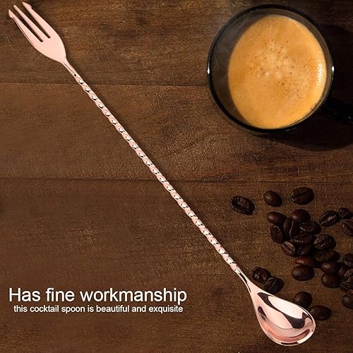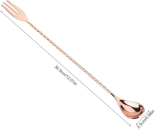Bâton de mélange de cocktail cuillère à long manche en acier inoxydable exquis outil de stratification de mélange à poignée torsadée antidérapante pour bar bar barman(Spoon with fork-Or rose)