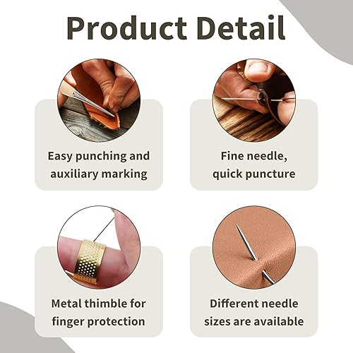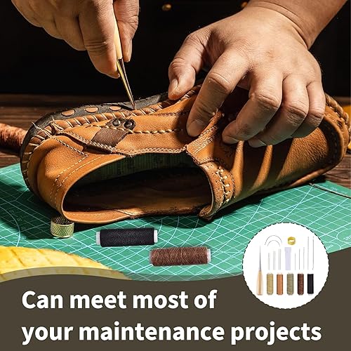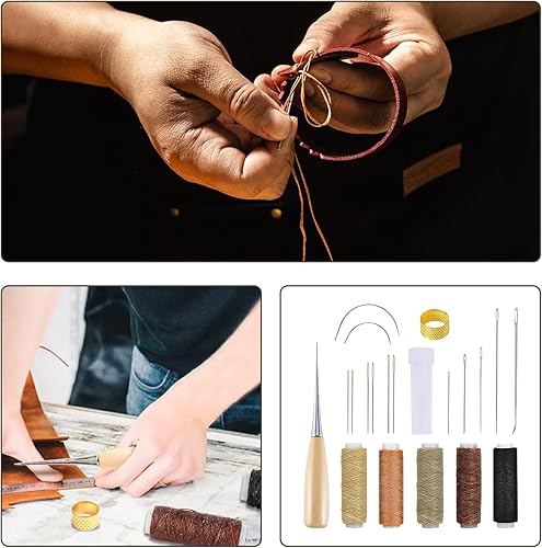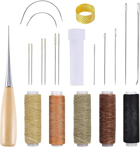 21 Pièces Kit de Couture en Cuir, Kit de Réparation pour Rembourrage Canapés, Sièges Auto et Manteaux, Aiguilles Variées, Fils Cirés, Dé à Coudre Ajustable, Outils de Réparation de DIY pour Cuir