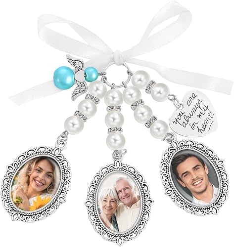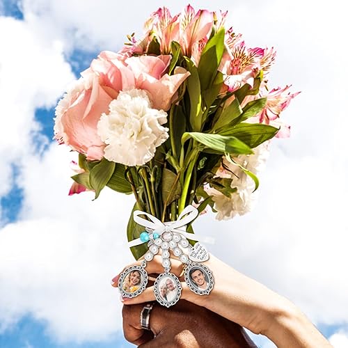 Pendentif Charme Bouquet de Mariage - Photo Charm Avec 3 Cadres - Anniversaire Mariée Bande