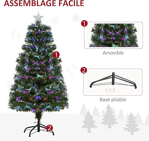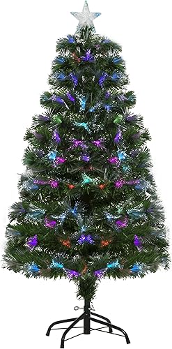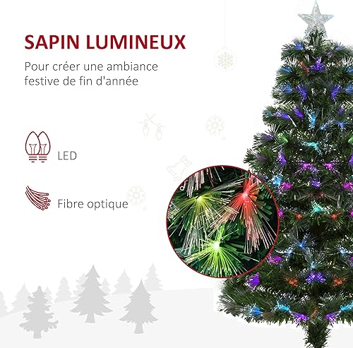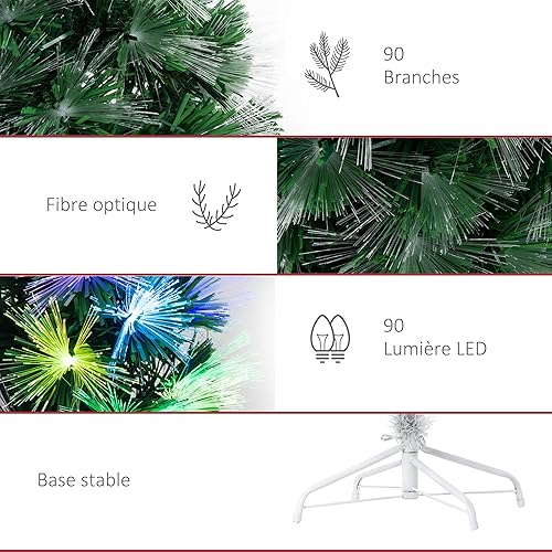 HOMCOM Sapin de Noël Artificiel Arbre de Noël Lumineux 120cm en Fibre Optique Deco Noël lumière à Variation de Couleurs 130 LED Vert