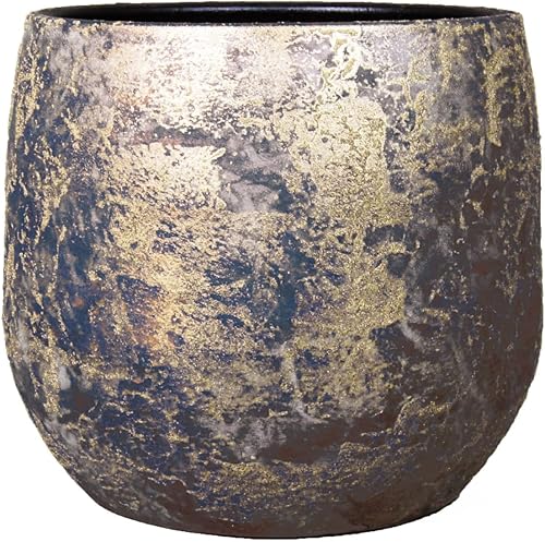 INNA-Glas Pot à Plantes Vintage Mago en céramique, Aspect Balayage, doré, 17 cm, Ø 19 cm - Pot de Fleurs