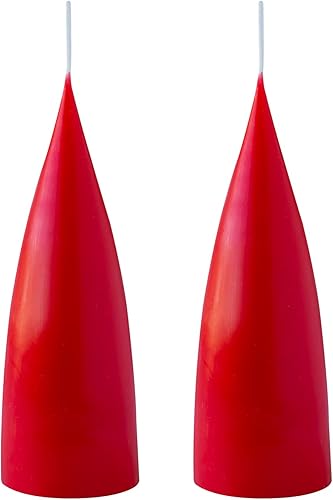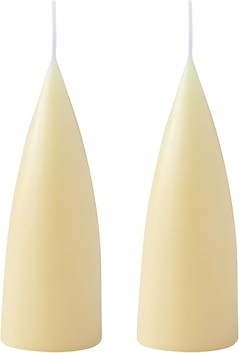 Kunstindustrien® Lot de 2 bougies en forme de cône, fabriquées au Danemark, 43 couleurs disponibles, bougies piliers sans gouttes et sans fumée, bougies longue durée de combustion de 15 heures,