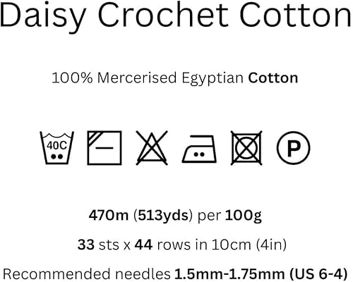 Fil à crochet #10 en coton égyptien mercerisé de qualité supérieure – Finition 3 plis effet nacré – Doux, résistant et brillant – 100 g – Coton à crochet marguerite 100 Blanc