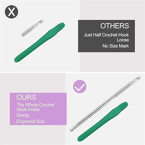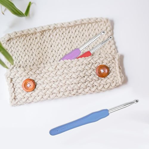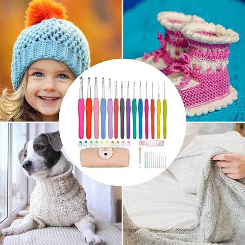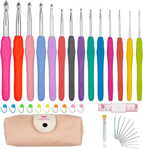 Lestiven 14 Pcs Crochet Set Multicolore, Aiguilles à Crochet Set de 14 Tailles avec Marqueurs de Point et étui Portable, Tricot Aluminium avec TPR Poignées Souples, Crochets à Tricoter pour Débutant