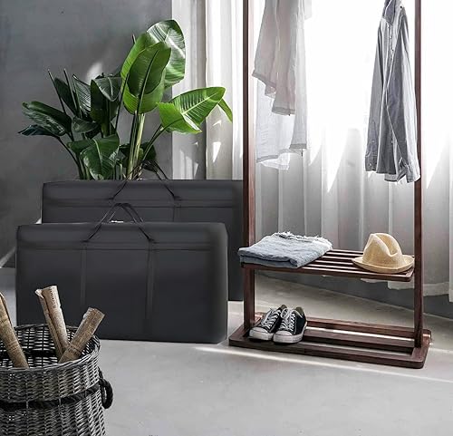 Sac de rangement, sacs de rangement pour vêtements, sacs de déménagement Oxford, pliables avec poignée pour vêtements, couettes, couvertures, 80 x 45 x 25 cm, lot de 2, noir