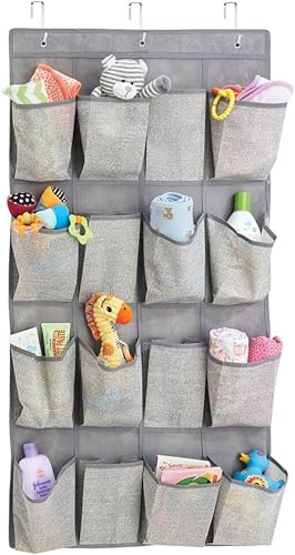 mDesign étagère Suspendue avec 16 Poches pour Le Rangement – Parfaite pour Les Articles bébé – Rangement Suspendu – Sac de Rangement Suspendu pour Les Accessoires – Couleur : Taupe/Nature