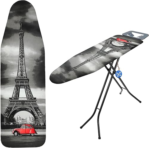 KADAX Housse de table à repasser, avec cordon de serrage, housse de table à repasser, pour fer à repasser à vapeur, housse de rechange avec mousse de polyuréthane (tour Eiffel 148 x 52 cm)