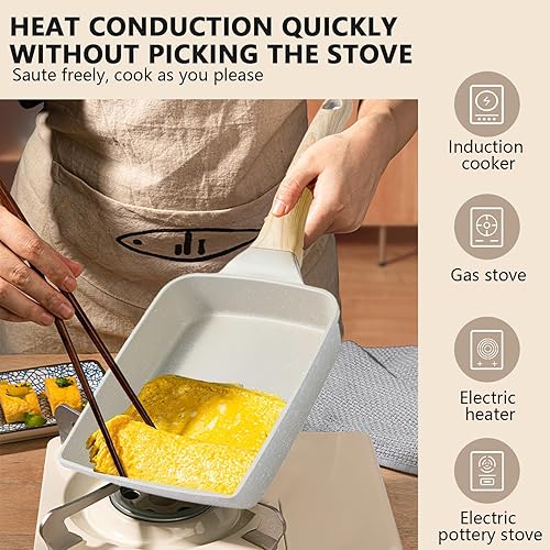 COZHYESS Poêle Omelette Japonaise, Tamagoyaki Poêle Rectangulaire, Poêle à Sushi, Poêle Carrée, Multifonctionnel Poêle Pancake pour Omelette, Pancakes, Hamburger, Petit-déjeun