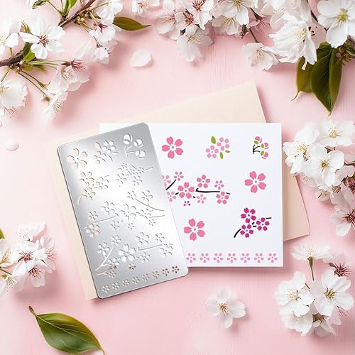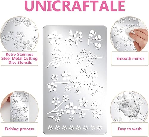 UNICRAFTALE Pochoir Métal Fleur de Cerisier pour Artisanat Pochoir Acier Inoxydable pour Peinture les Plantes Printanières Modèle Réutilisable pour Gravure Dessin Scrapbooking Sur Bois Papier Tissu