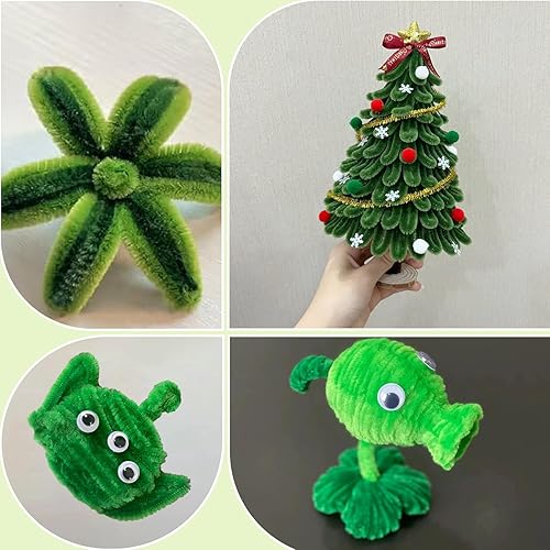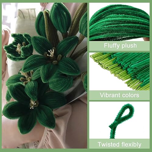 YHUIKXIN 200 Pièces Fil Chenille Vert 30cm Cure Pipe avec 100 Yeux Autocollants 10 Bâtons de Fleurs 1 Ruban Adhésif Vert Foncé pour DIY, Fleurs, Décoration (Vert, Vert Clair)