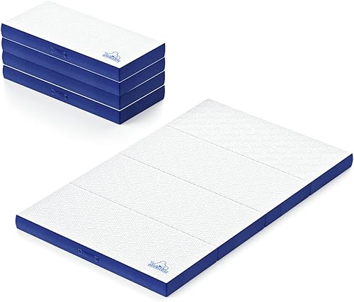 Doubleslee Matelas Pliable 2 Places 120×195 | 4 Plis Matelas d'appoint Ultra-Portable | Matelas pour Invités Mousse Confortable | Épaisseur 10 cm | Housse Lavable | pour Camping, Voyages