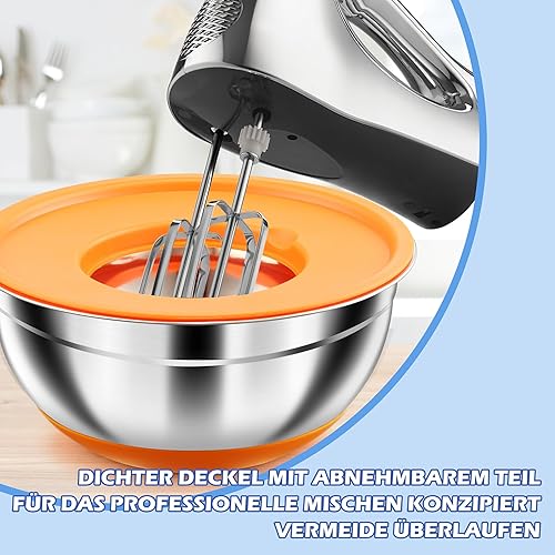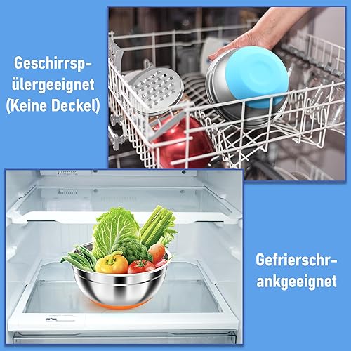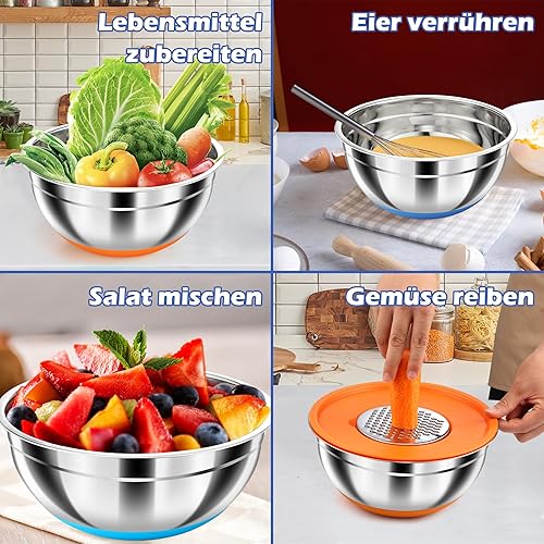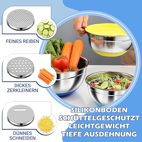 Pleafind Set de 7 saladier avec couvercle, Bol de mélange en acier inoxydable avec râpe,Tailles 4.3, 3.8, 3.3, 2, 1.4, 1, 0.7 L Utilisable pour mélanger et servir