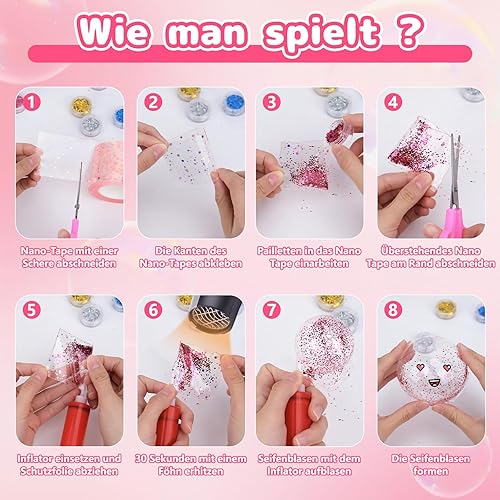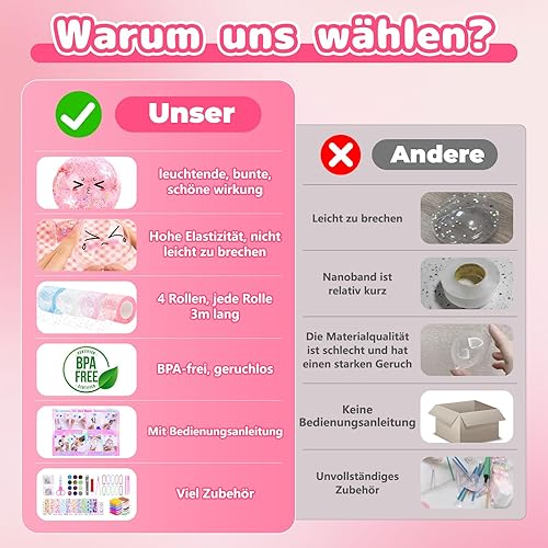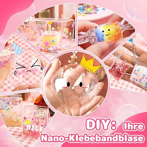 Meetory Kit de bulles Nano Tape - Brille dans le noir - Ruban adhésif magique nano multi-usage - Convient pour les jeunes filles - Avec autocollants à paillettes - Kit de bricolage - Favors