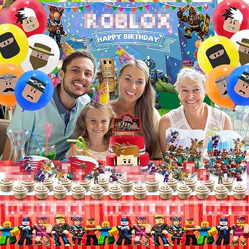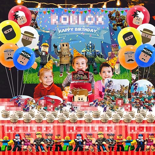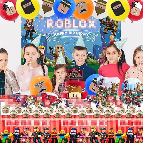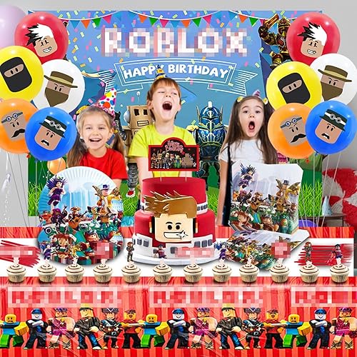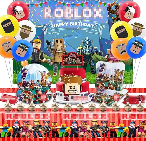 DSTLWBCS Vaisselle Anniversaire pour 10 Invités, 87 Pcs, Ballons, Toile de Fond, Décoration Enfant, Gâteau, Nappe, Assiette, pour Thème Fête