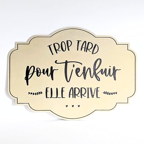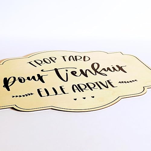 TE Whaka | Grande pancarte en bois 40 x 29 cm - Trop tard pour t'enfuir, elle arrive | Décoration mariage, panneau, cérémonie religieuse ou laïque, demoiselle d'honneur, garçon d'honneur