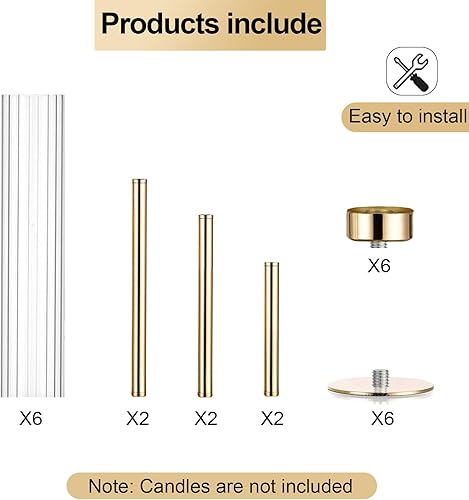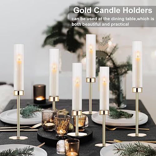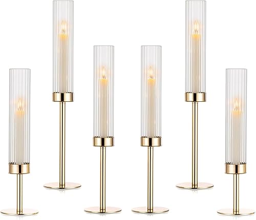 Hatende Lot de 6 bougeoirs dorés en verre pour décoration d'intérieur, mariage, dîner, fête, anniversaire de mariage