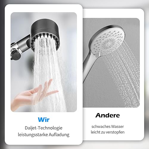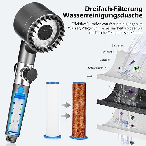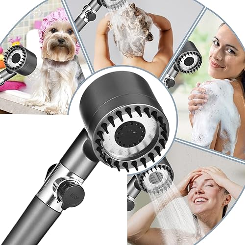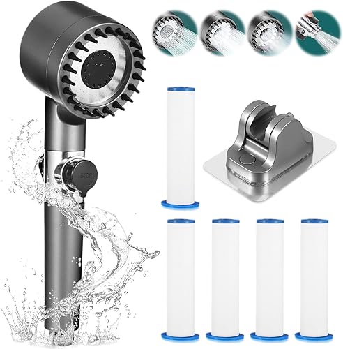 Pommeau de douche haute pression avec 4 modes, réglable à économie d'eau, avec 5 filtres et support, pommeau de douche avec fonction d'arrêt pour adultes, enfants, animaux domestiques