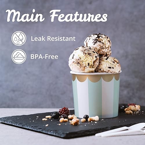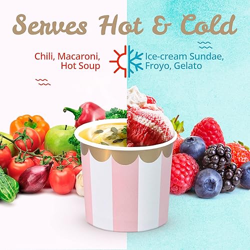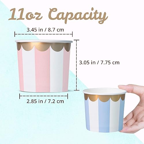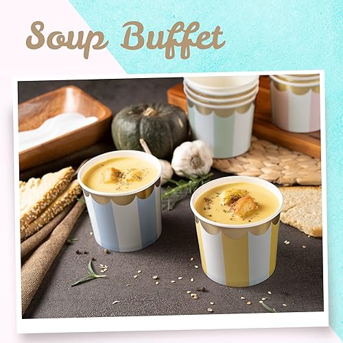 Coupes en Papier Confettiville, 50 pièces, 11 oz, Bols à Dessert Jetables pour Aliments Chauds ou Froids, 5 Couleurs Rayées Pastel avec Dorure Découpée