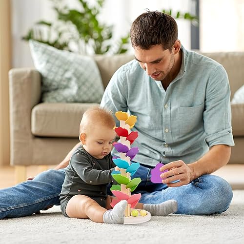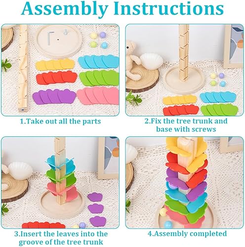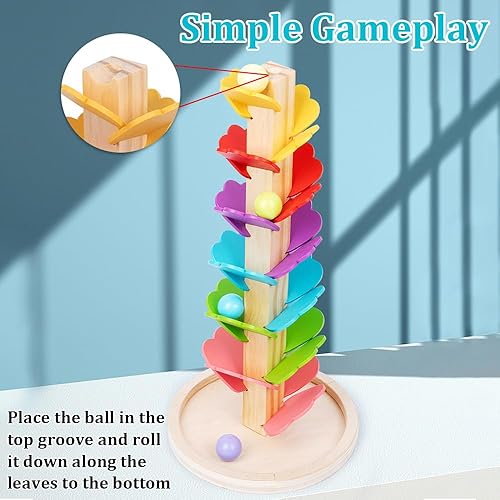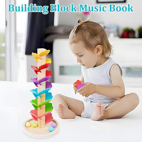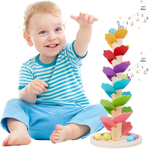 Arbre Musical en Bois avec Bille de Course, 1 Base, 4 Billes, 6 Couleurs, Jouet Montessori 3+ Ans, Tour Coloré aux Billes Roulantes, Tour Arc-en-Ciel pour Garçons/Filles