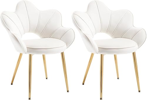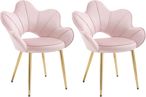 KHISCHMO Lot de 2 Chaises de Salle à Manger Modernes et Décontractées Chaises à Dossier Pétale en Velours Convient pour Le Salon, Salle à Manger ou Chambre à Coucher,Rose