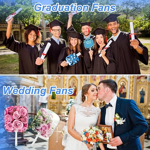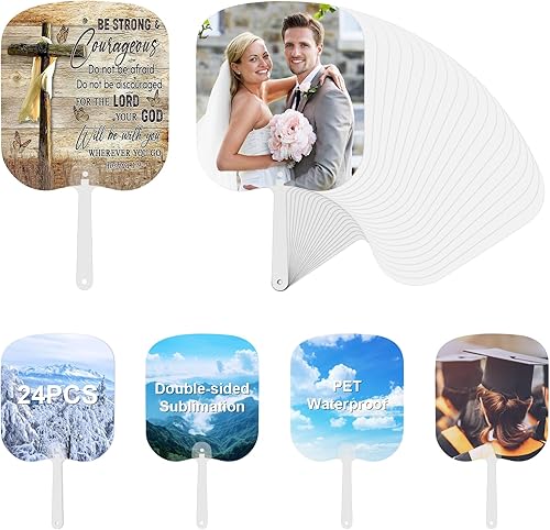 24 Pièces Éventails à Sublimer Blancs avec Poignées Amovibles - Double Face pour Personnalisation - Cadeaux Mariage, Église, Graduation - Taille 17x18 cm - Matériau Pet Résistant