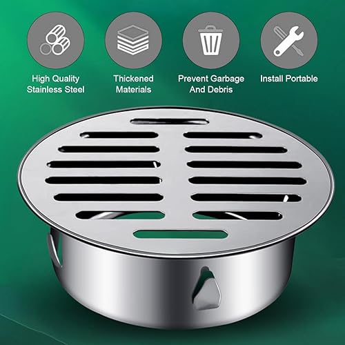 Siphon De Sol, Drain De Sol De Toit en Acier Inoxydable, Siphon De Sol Rond en Acier Inoxydable, Siphon De Sol en Acier Inoxydable, Siphon De Sol Rond, Drainage De Sol Anti-Blocage (110 Flat Mouth)