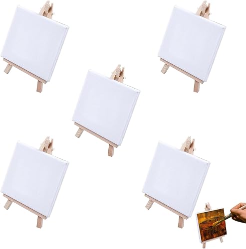 Mini Chevalets Avec Toile, 5 pièces, Set de Mini Chevalets en Bois, Toile 10 x 10 cm, avec Petit Chevalet 8 x 15 cm, pour la Décoration de Mariage, L'artisanat de la Peinture, L'affichage