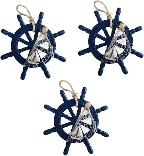 Garneck Lot De 3 Décorations Murales En Bois Style Nautique Pendentif Mural Rétro En Bois Style Méditerranéen Pendentif Suspendu