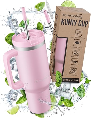 My Vesperbox Kinny Cup Gobelet isotherme, avec paille 500, 950, 1200 ml, tasse à café, à emporter, en acier inoxydable, sans BPA et mélamine