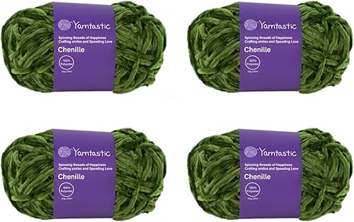 Yarntastic Pelote de fil à tricoter ou à crochet en velours chenille - 50 g/80 m - Poids aran (8 pelotes par pouce) - 24 couleurs et multicolores disponibles (4, vert citron #42)