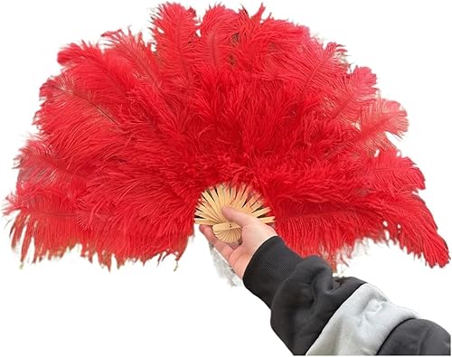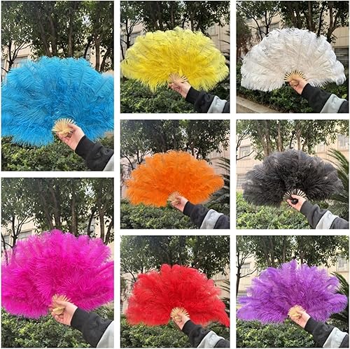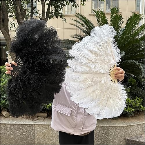 TXLEAPEY Éventail en Plumes Naturelles de Rose 15 os for Les Fans de Danse de Spectacle de fête de Carnaval Éventail Pliable à la Main en Plumes moelleuses 70x40(White,2 PCS 70cmx40cm)