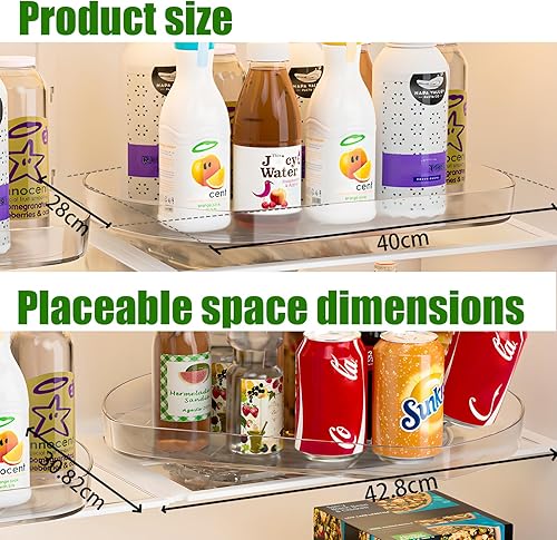 LANMOU Lazy Susan Organiseur de Plateau Tournant pour Réfrigérateur, Plateau Tournant Frigo Rectangulaire 40cm, 360° Rotatif, avec Plateau Tournant Antidérapant, Transpar