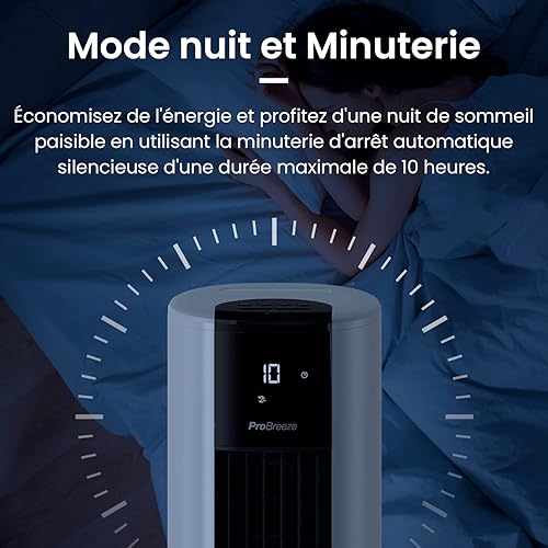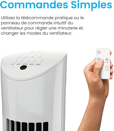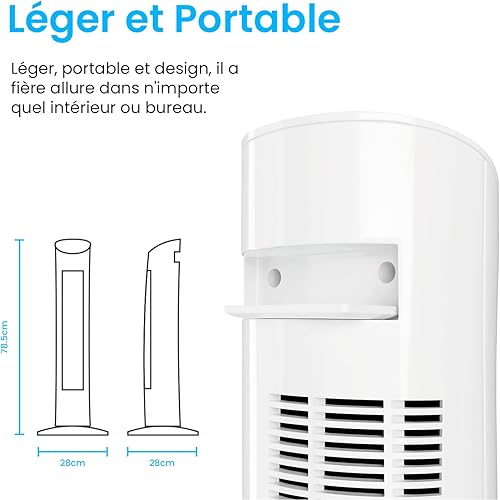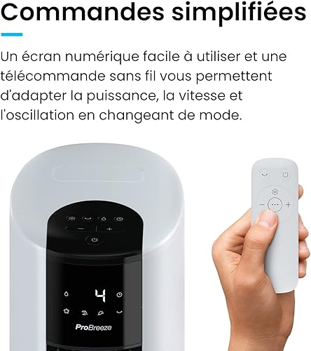Pro Breeze Ventilateur Colonne Oscillante, Tour de 79 cm, Oscillation 70°, 60 Watts, 3 Vitesses - Télécommande et Minuterie, Programmable, Adapté pour la Maison et le Bureau - Blanc