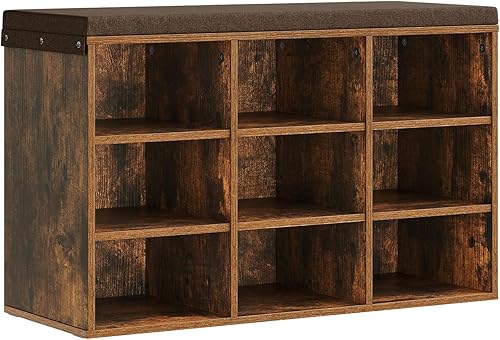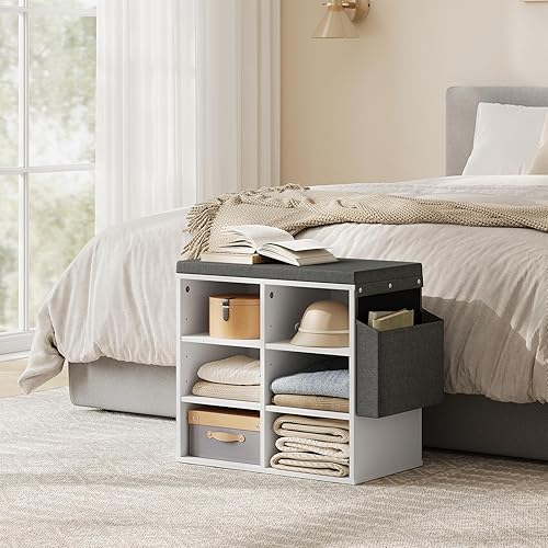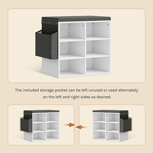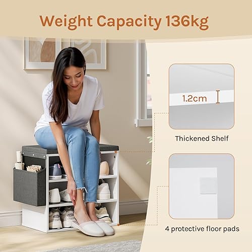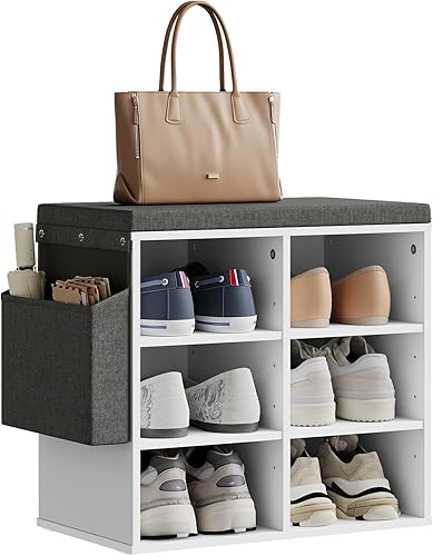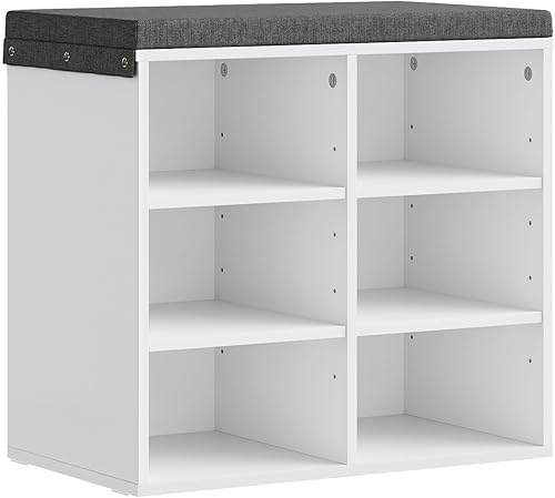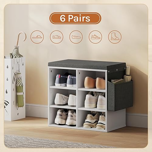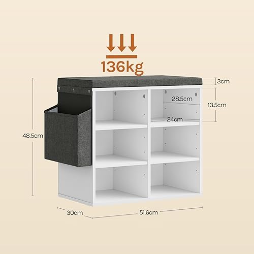 WOLTU Banc de Rangement à Chaussures, Meuble d’Entrée pour Chaussures, Étagère Autoportante à 12 Compartiments en Panneau Aggloméré avec Coussin en Tissu Gris, Blanc, 102x30x48,5 cm