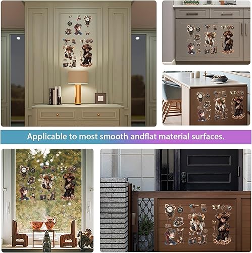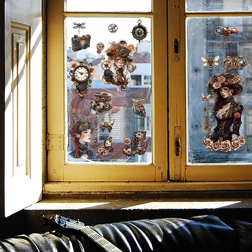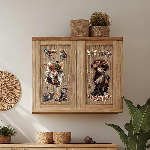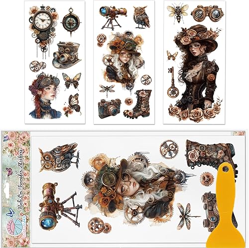 GLOBLELAND 3 Feuilles de Transferts Colorés de Dame Steampunk Gear Woman pour Décorer les Meubles Objets Vintage Stickers pour la Décoration de la Chambre du Salon du Bureau Ou de la Table 6x12pouces