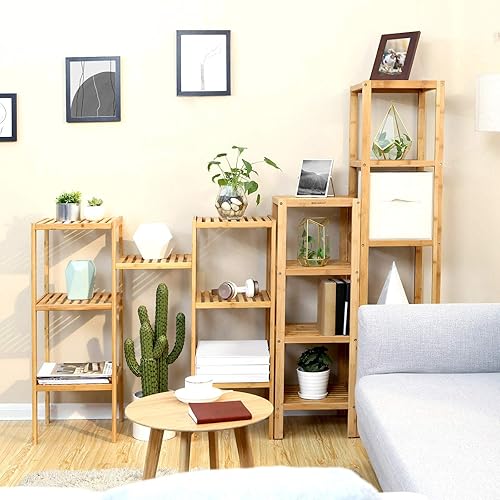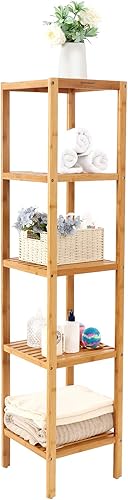 SONGMICS Étagère de Salle de Bain à 5 Niveaux en Bambou, Étagère de Rangement pour la Cuisine, 33 x 33 x 146 cm (L x l x H), pour Espace réduit, Salon, Chambre, Couloir BCB55Y