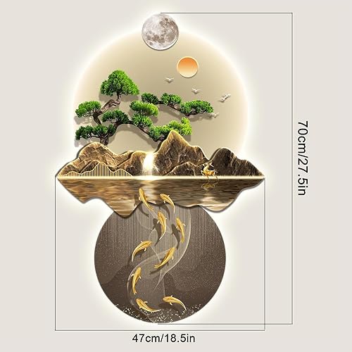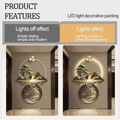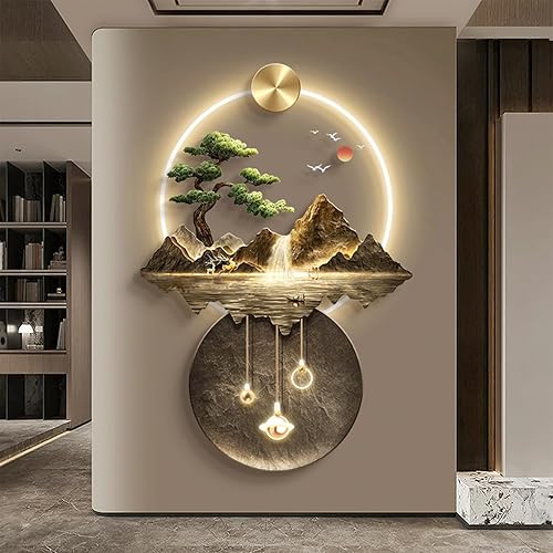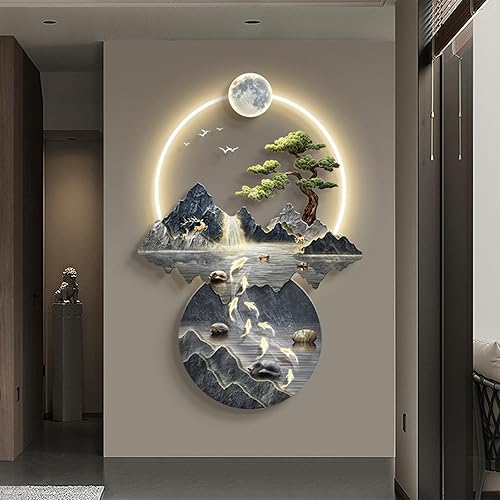 YuchiFa Décoration murale 3D, sculptures murales à suspendre avec lumière LED, lampe de décoration murale, peintures murales chinoises pour la maison, l'entrée, le couloir, la chambre à coucher (#2)